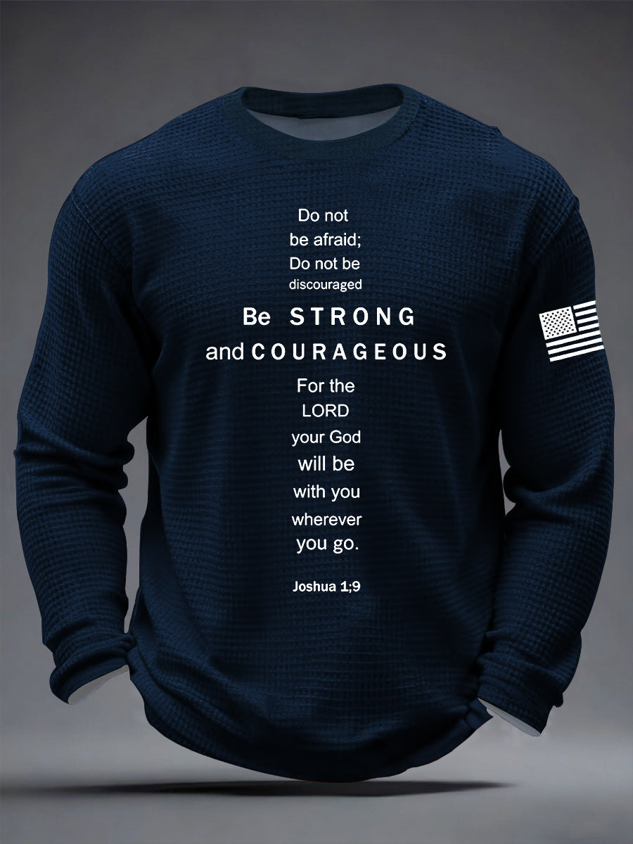 Men's Christian Be Strong and Courageous Cross Waffle Long Sleeve T-Shirt