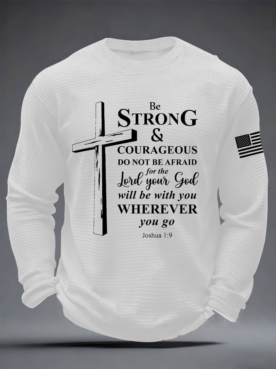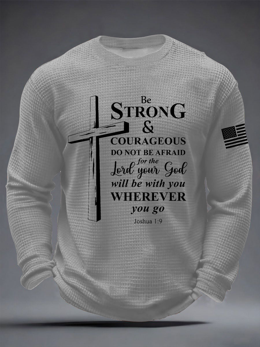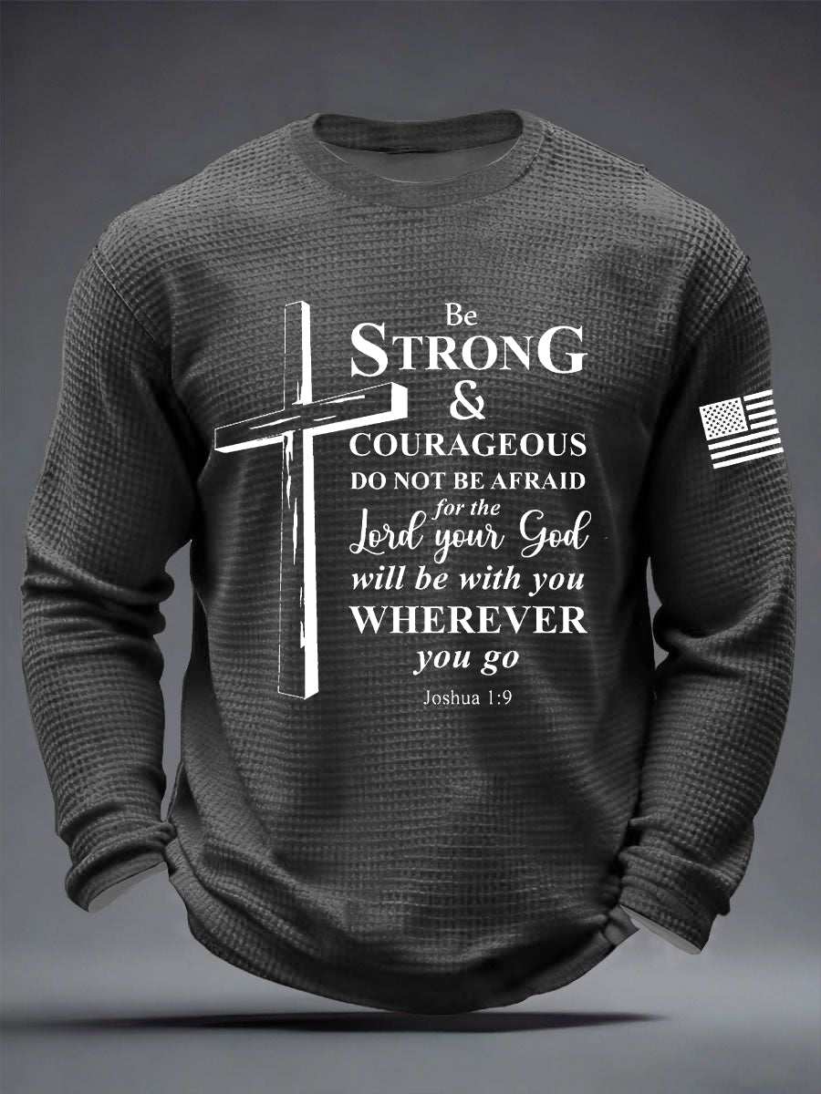 Men's Christian Cross Be strong and courageous sign Joshua 1:9 Waffle Long Sleeve T-Shirt