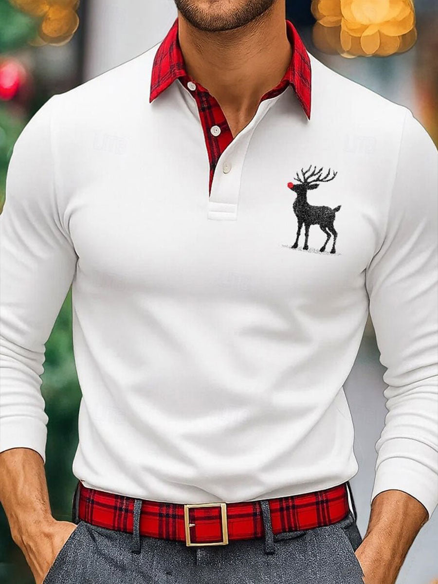 Men's Christmas Reindeer Print Long Sleeve Shirt