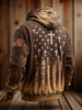 Men's Faith Cross American Flag Print Oversized Drop-Shoulder Hoodie with Pockets