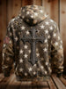 Men's Faith Cross American Flag Print Oversized Drop-Shoulder Hoodie with Pockets