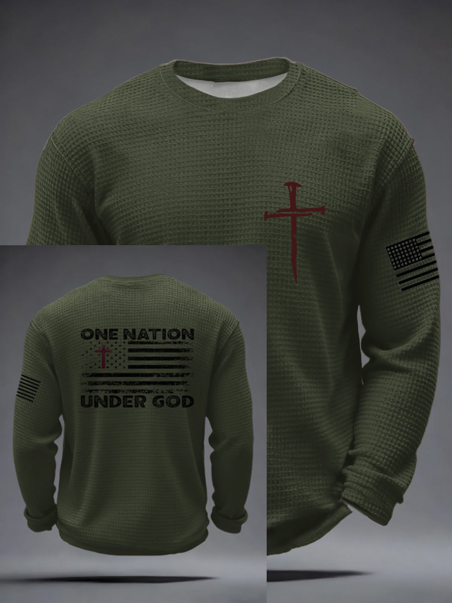 Men's Faith Cross NATION ONETUNDEROF GOD Waffle Long Sleeve T-Shirt
