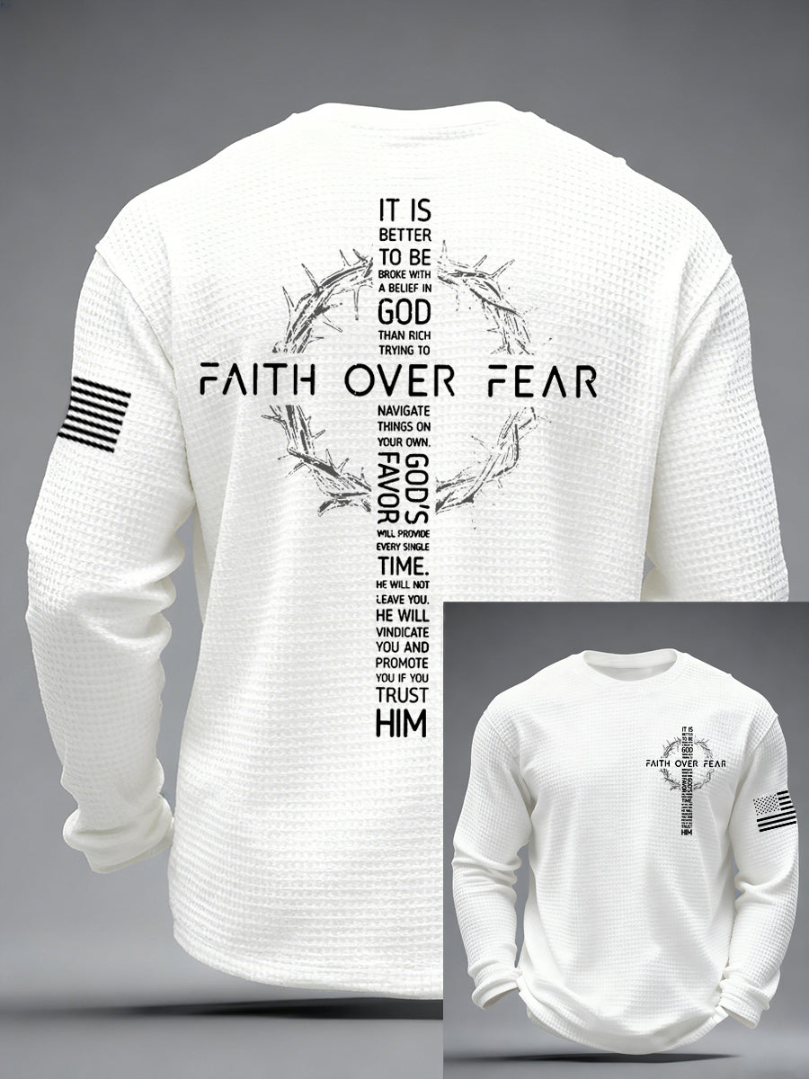 Men's Faith Over Fear Print Casual Waffle Long Sleeve T-Shirt