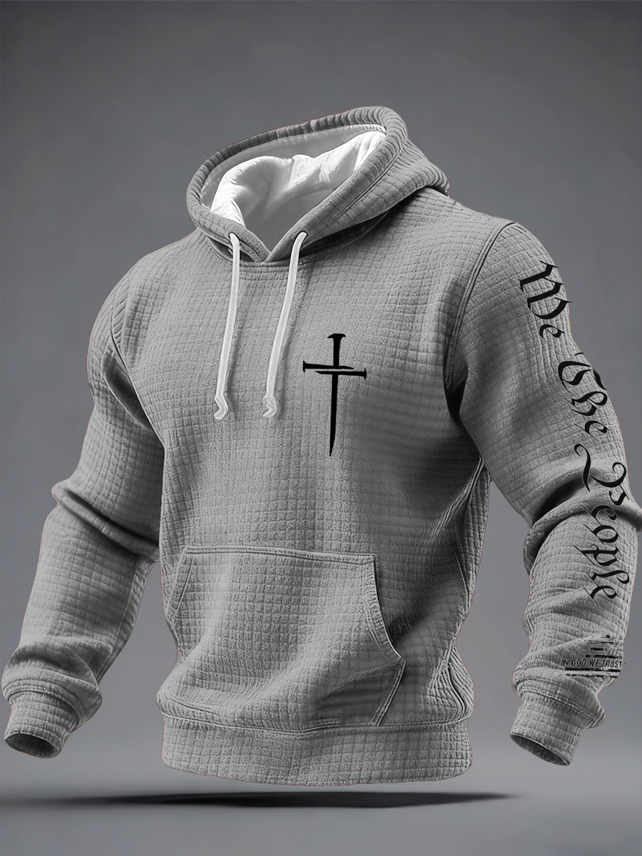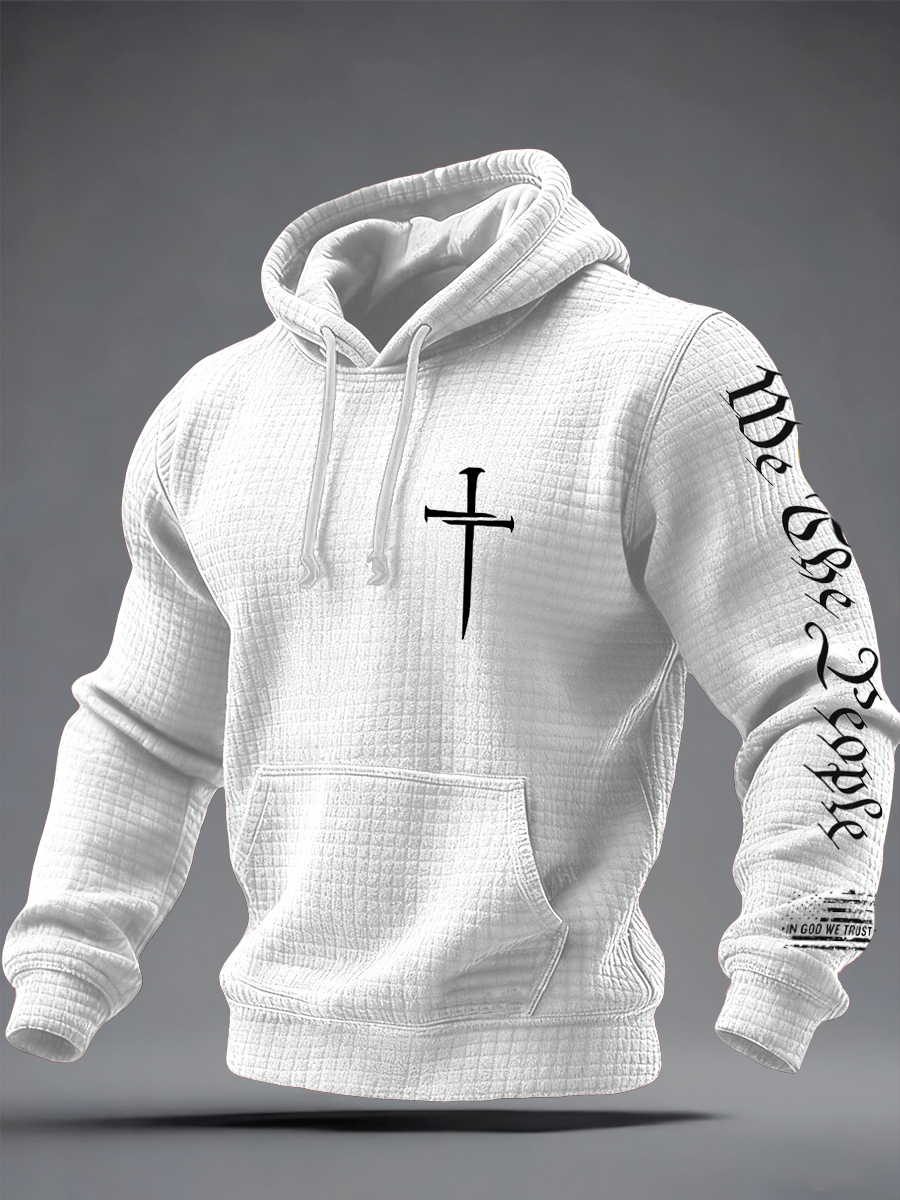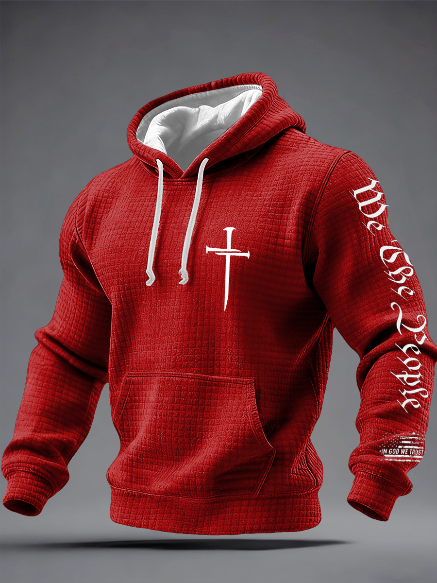 Men's Faith Print Checkered Cotton Hoodie