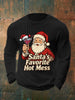 Men's Funny Christmas Santa's Favorite Hot Mess Casual Waffle Long Sleeve Top