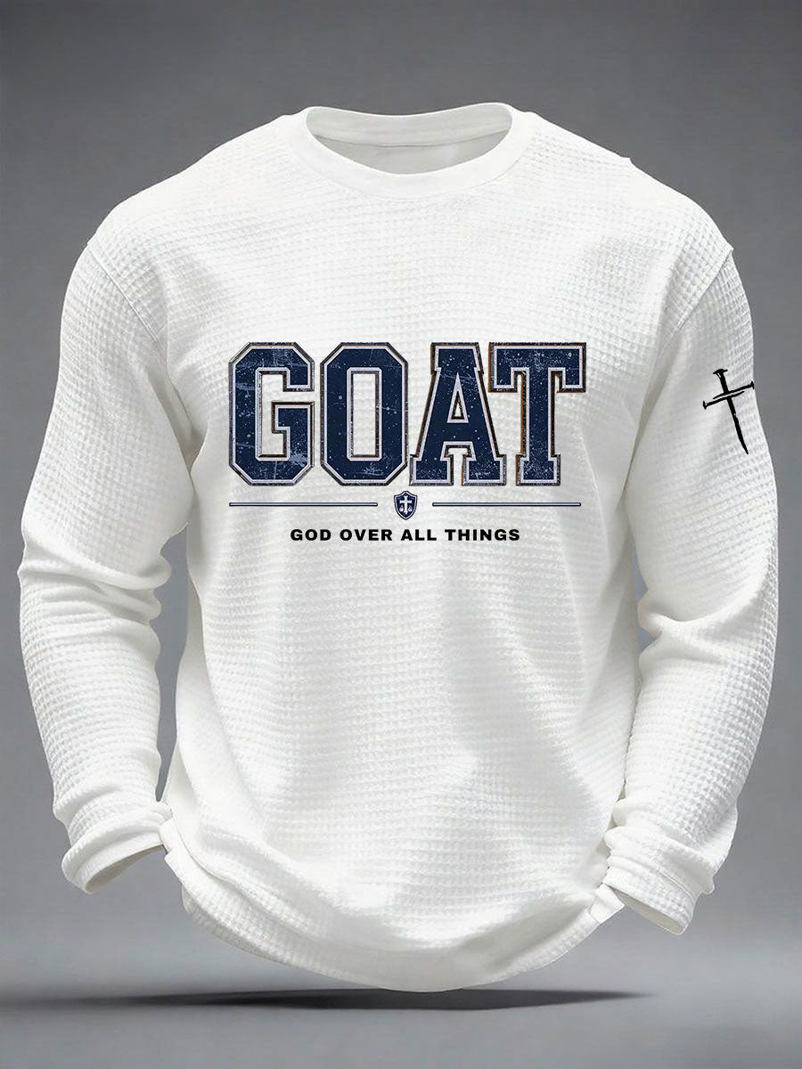 Men's GOAT God Over All Things Waffle Print Casual T-Shirt