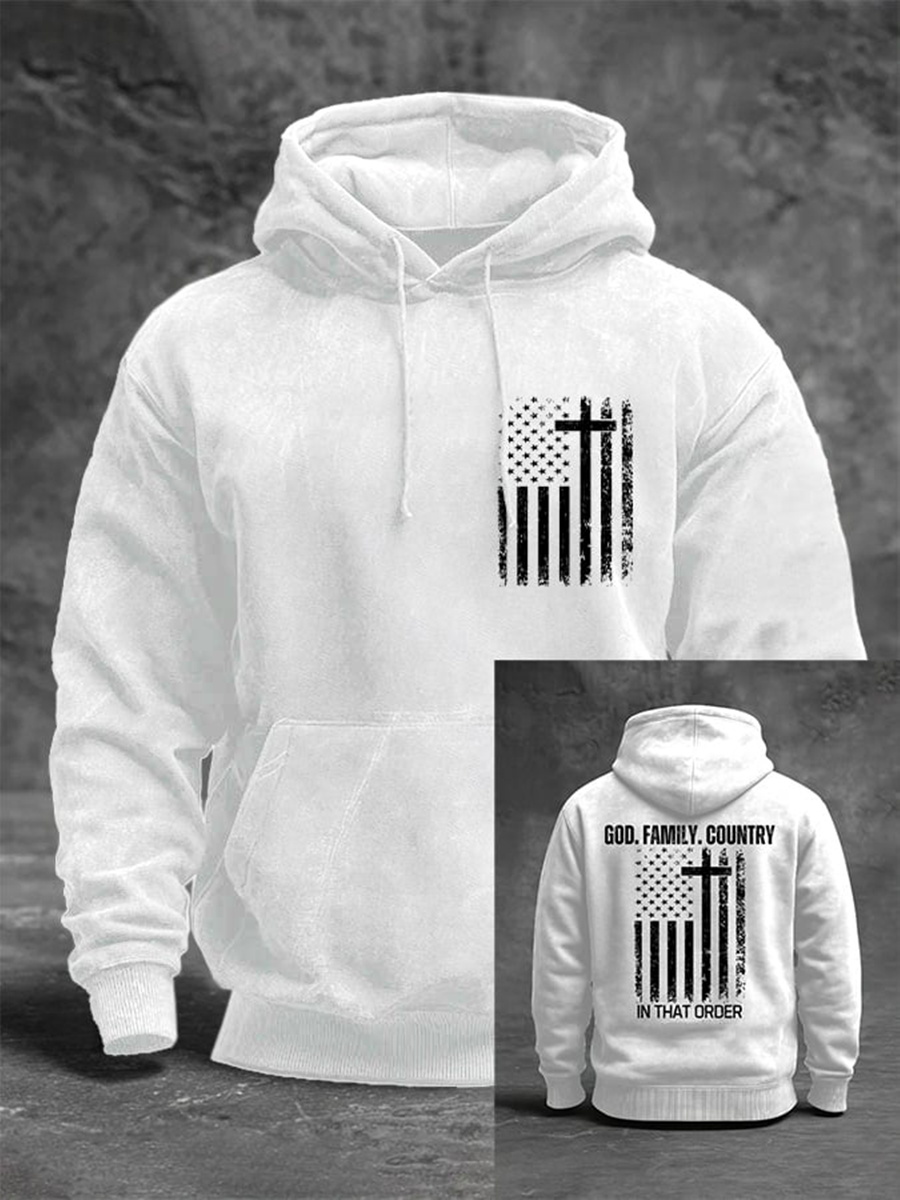 Men's God Family Country In That Order Print Hoodie