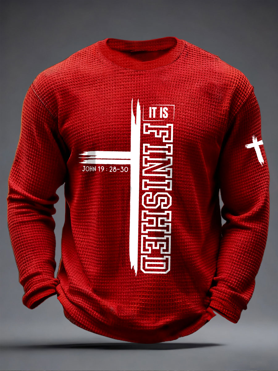 Men's It Is Finished Waffle Print Casual T-Shirt