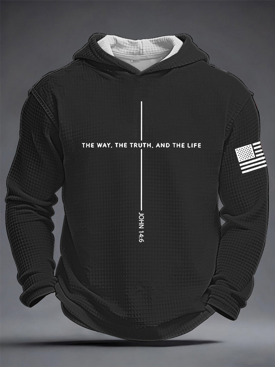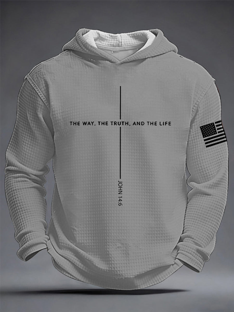 Men's Jesus The Way The Truth The Life Cross Waffle Hooded Sweatshirt