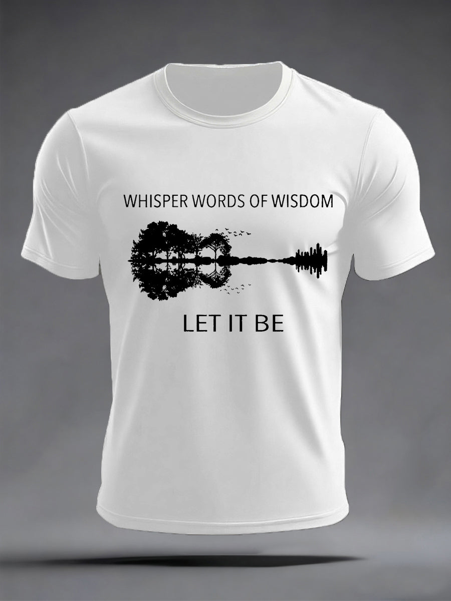 Men's Retro Whisper Words Of Wisdom Let It Be GuitarPrint Casual Tee
