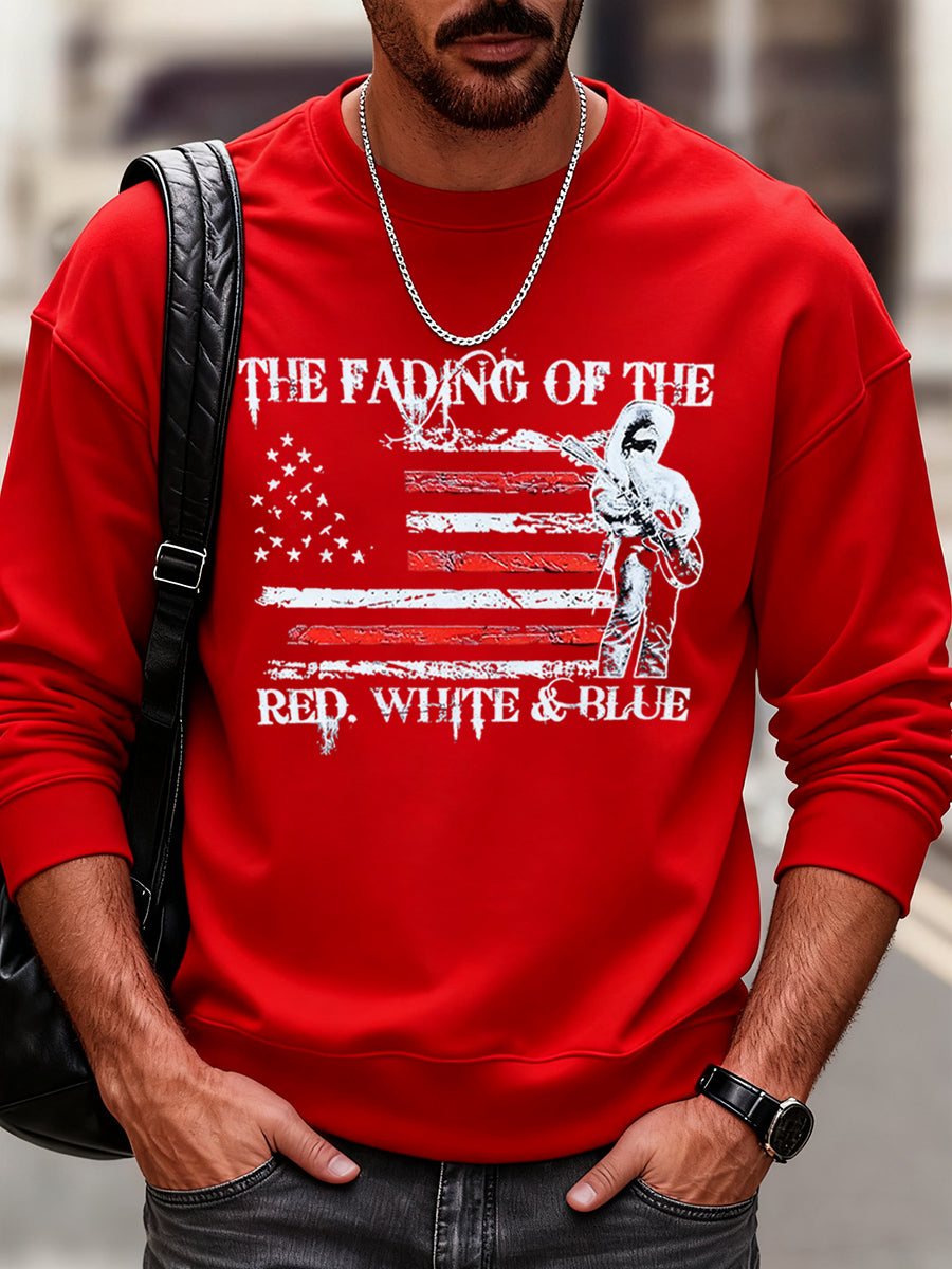 Men's The Fading of the Red White and Blue Printed Crew Neck Sweatshirt