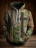 Men's Vintage American Flag Faith Cross Oversized Drop-Shoulder Hoodie with Pockets