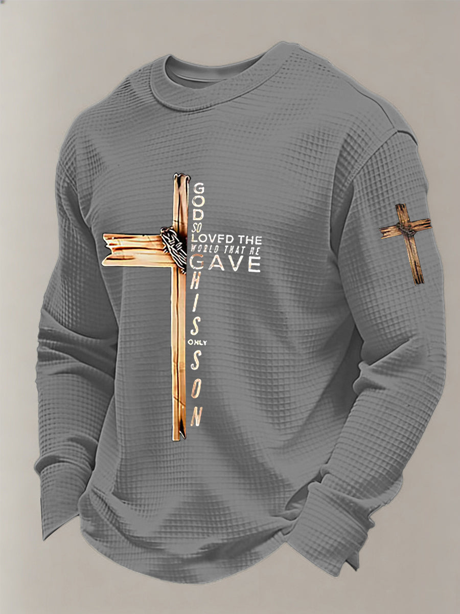 Men's With God So Loved The World Cross Printed Waffle Long Sleeve T-Shirt