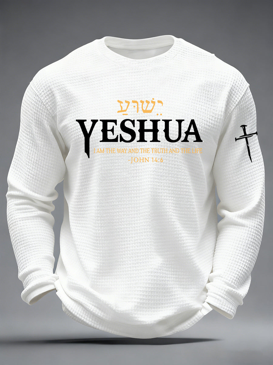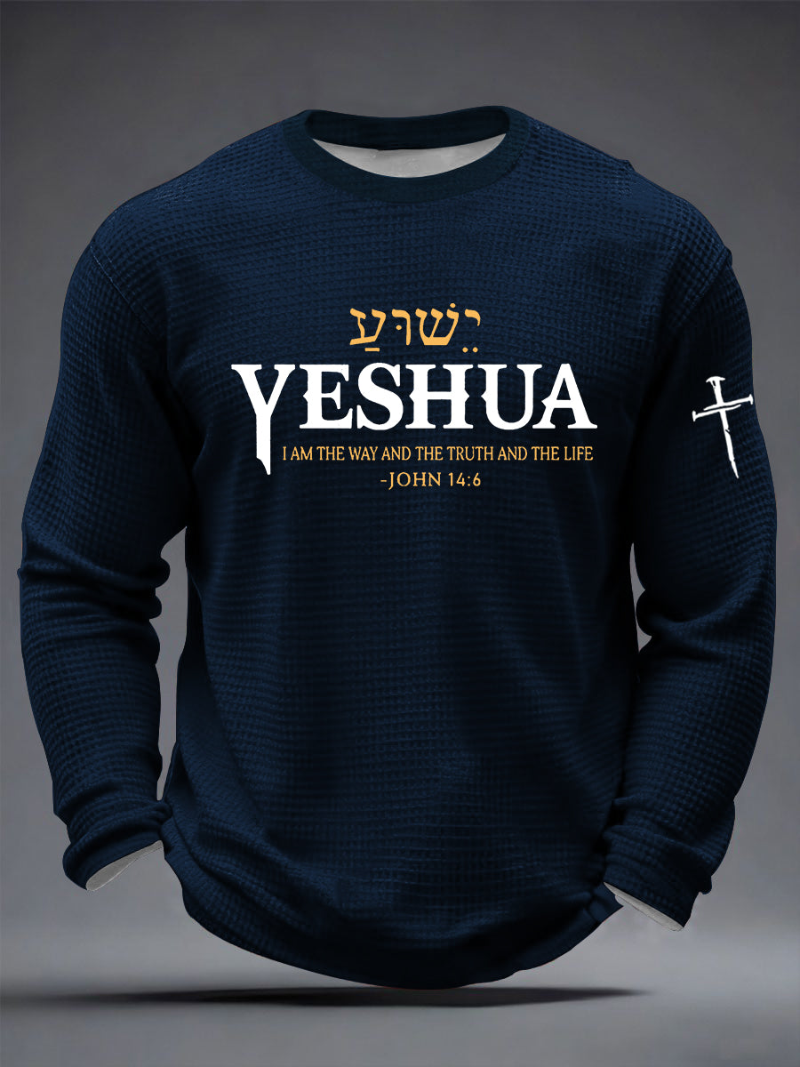 Men's Yeshua Christian The Way The Truth & The Life John 14:6 Cross Waffle Long Sleeve T-Shirt