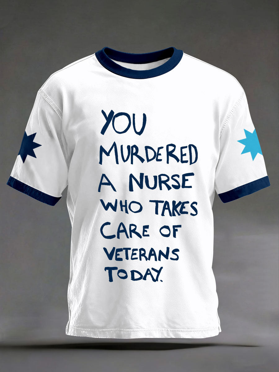 Men's "you murdered a nurse who takes care of veterans today" T-shirts