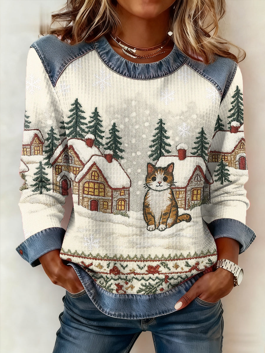 Women‘s Cute Winter Cat Print Cat Lovers Casual Sweatshirt