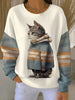 Women‘s Cute Winter Cat Print Cat Lovers Casual Sweatshirt