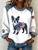 Women's American Flag Inspired French Bulldog Pattern Denim Patchwork Sweatshirt