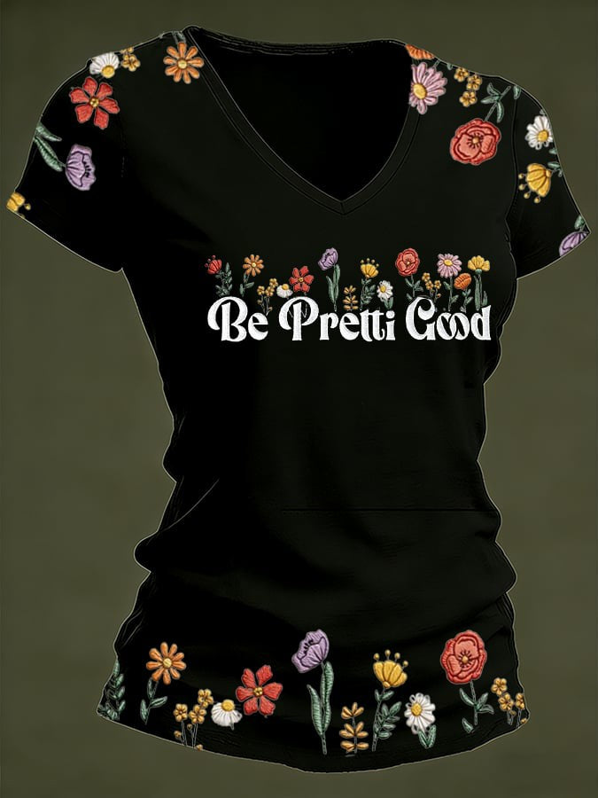 Women's Be Pretti Good Printed V-neck T-Shirt