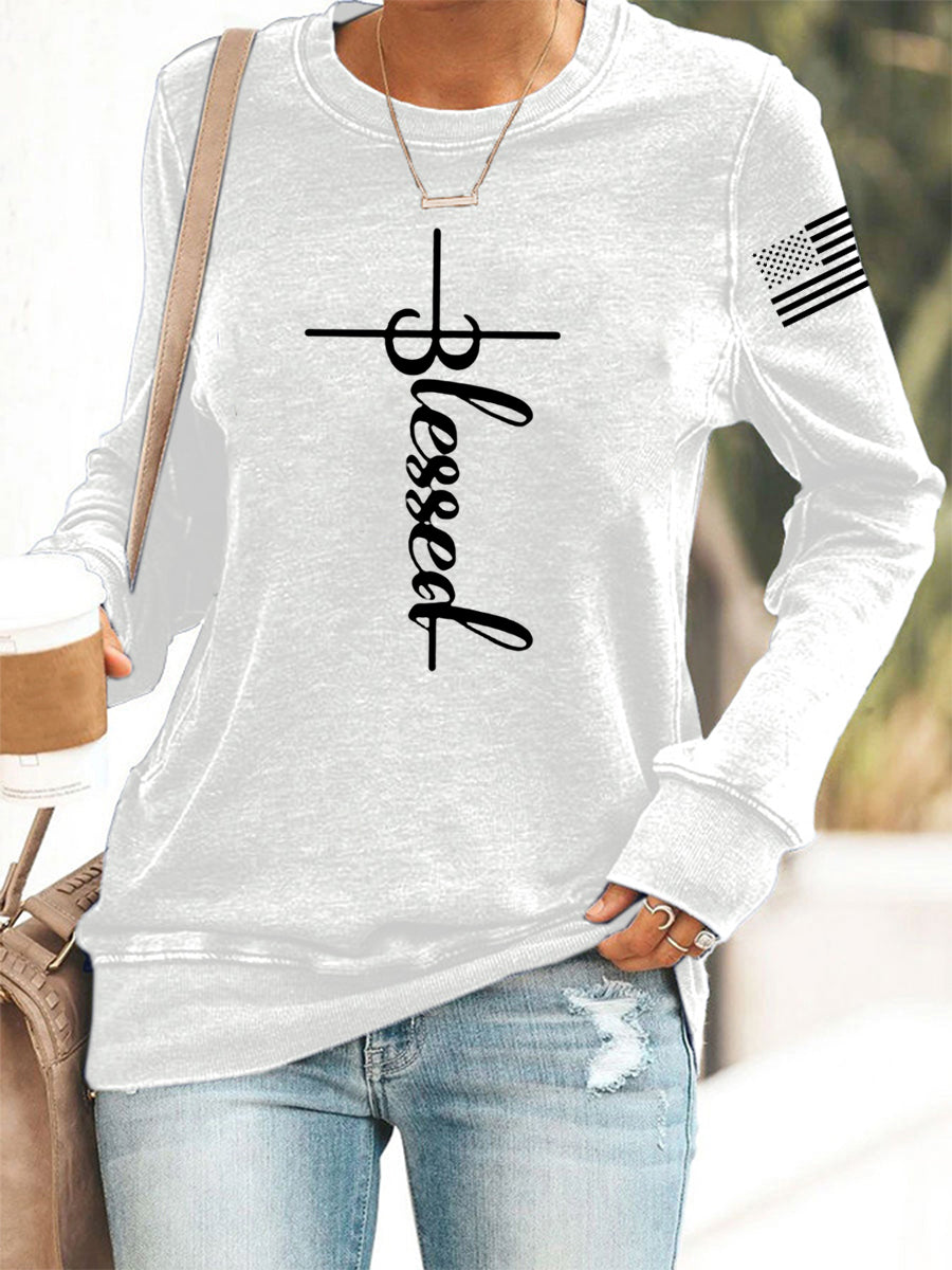 Women's Belssed USA Flag Print Casual Sweatshirt