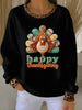 Women's Casual Thanksgiving Ribbed Round-Neck Sweatshirt