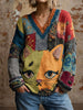 Women's Cat Art V-Neck Tops