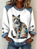 Women's Cat Paws Art Printed Denim Patchwork Top