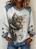 Women's Cat Paws Art Printed Denim Patchwork Top