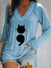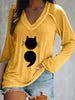 Women's Cat Print V-Neck Long Sleeve T-Shirt