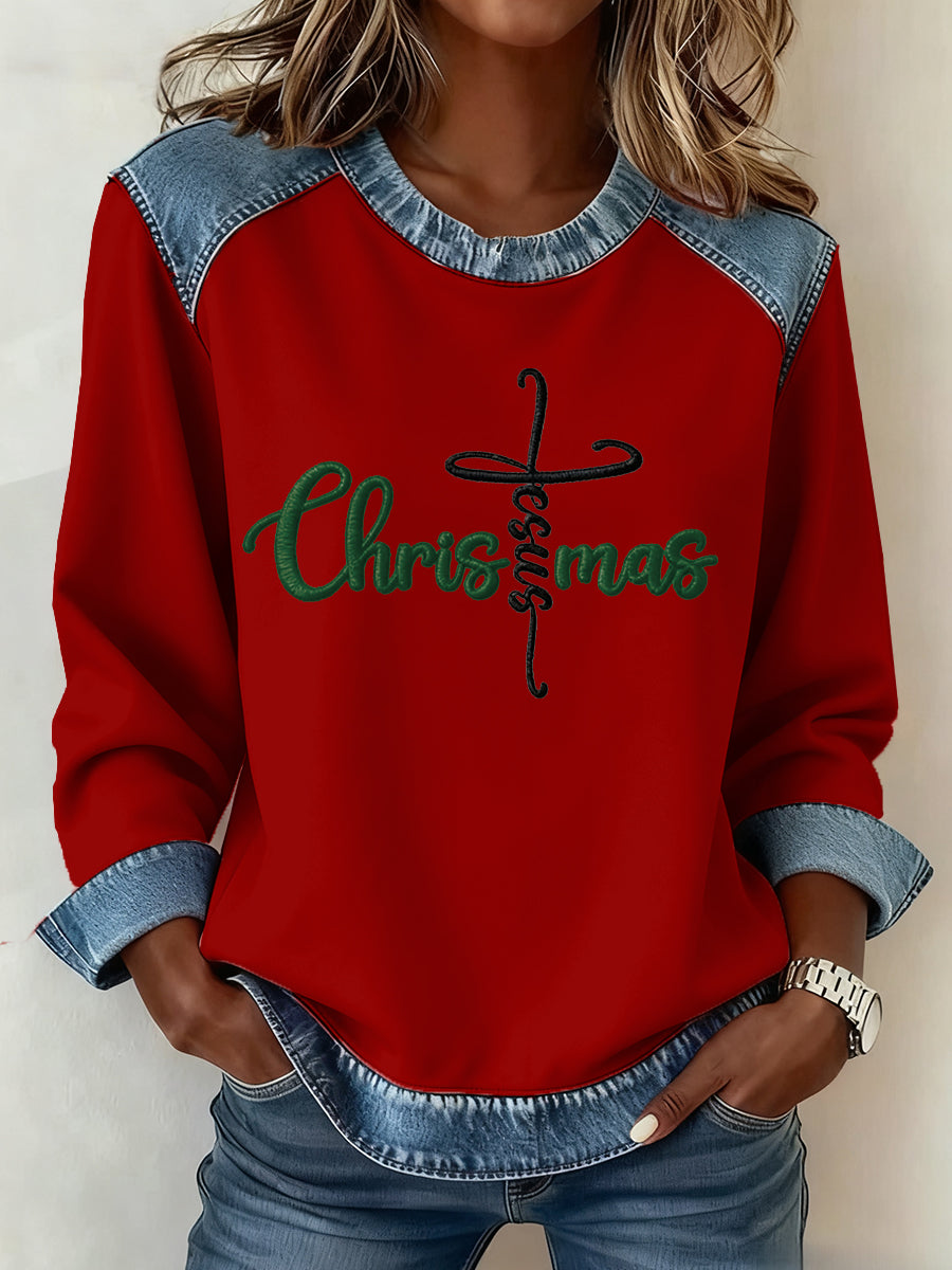 Women's Christmas Belief Pattern Patchwork Art Sweatshirt