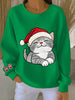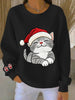 Women's Christmas Cute Cat Art Ribbed Round-Neck Sweatshirt