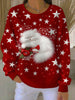 Women's Christmas Cute Sleeping Cat Stars Art Ribbed Round-Neck Sweatshirt