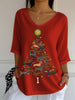 Women's Christmas Dachshund Christmas Tree V-Neck Half-Sleeve T-Shirt