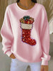 Women's Christmas stockings Print Ribbed Round-Neck Sweatshirt