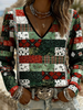 Women's Christmas Tree Patchwork Print V-Neck T-Shirt