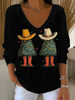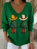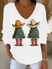 Women's Christmas tree Print V-Neck Ribbed Top