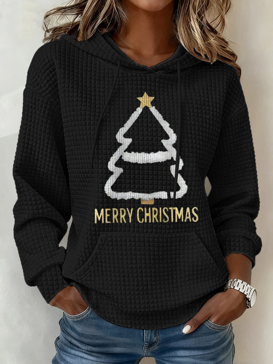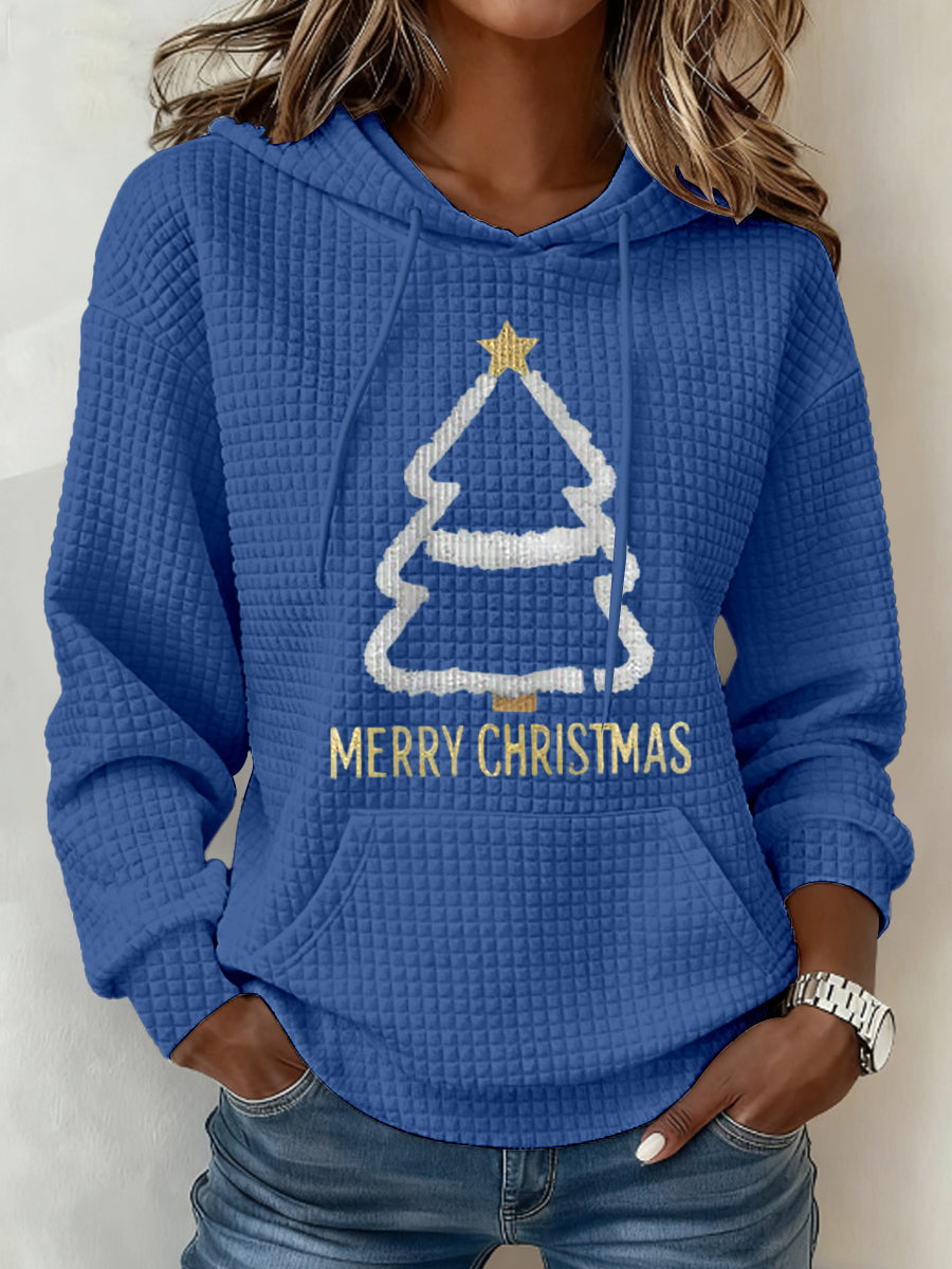 Women's Christmas Tree Waffle Print Casual Hoodie