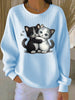 Women's Cut Cat Ribbed Round-Neck Sweatshirt