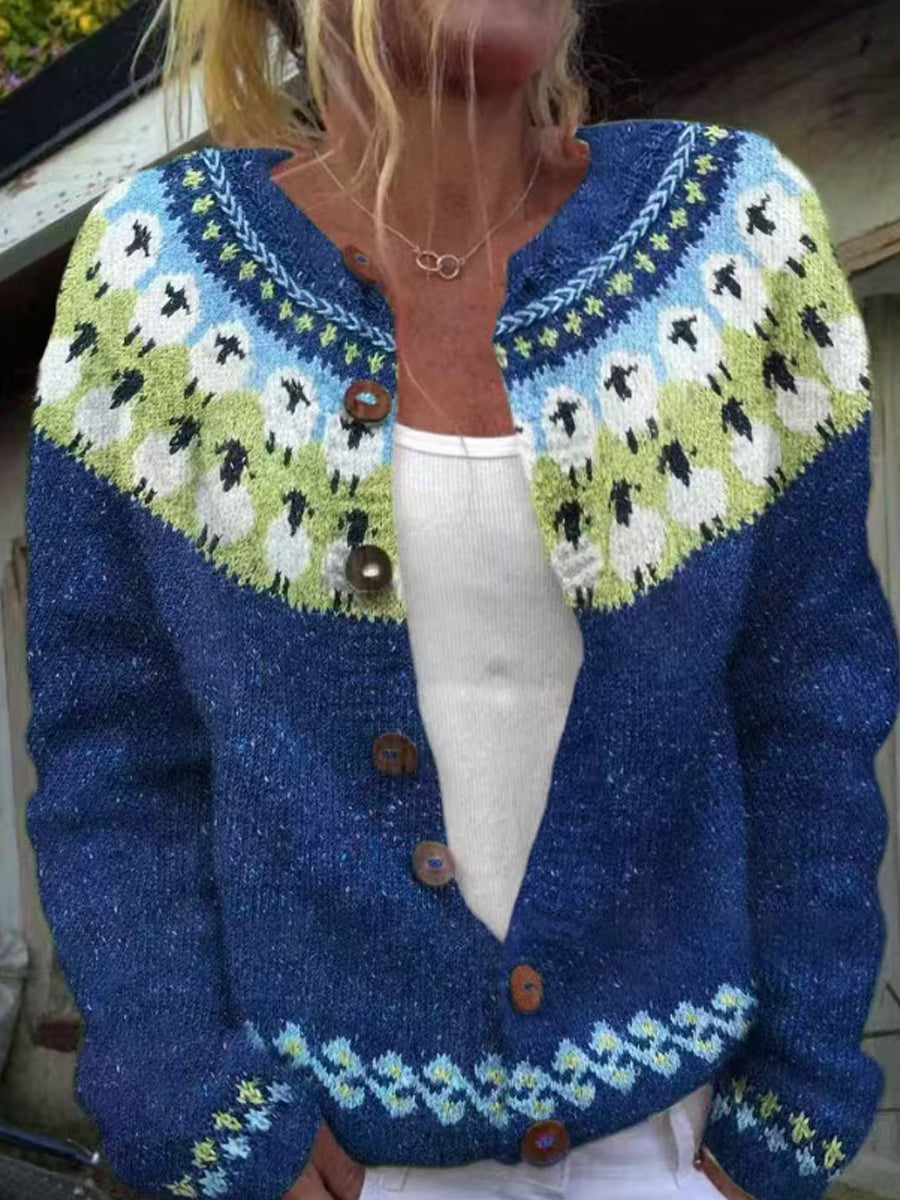 Women's Cute Animal Icelandic Sweater Button Cardigan Chunky Knit Sweater