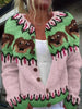 Women's Cute Animal Icelandic Sweater Button Cardigan Chunky Knit Sweater