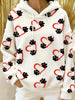 Women's Cute Cat Heart And Paws Flannel Hoodie