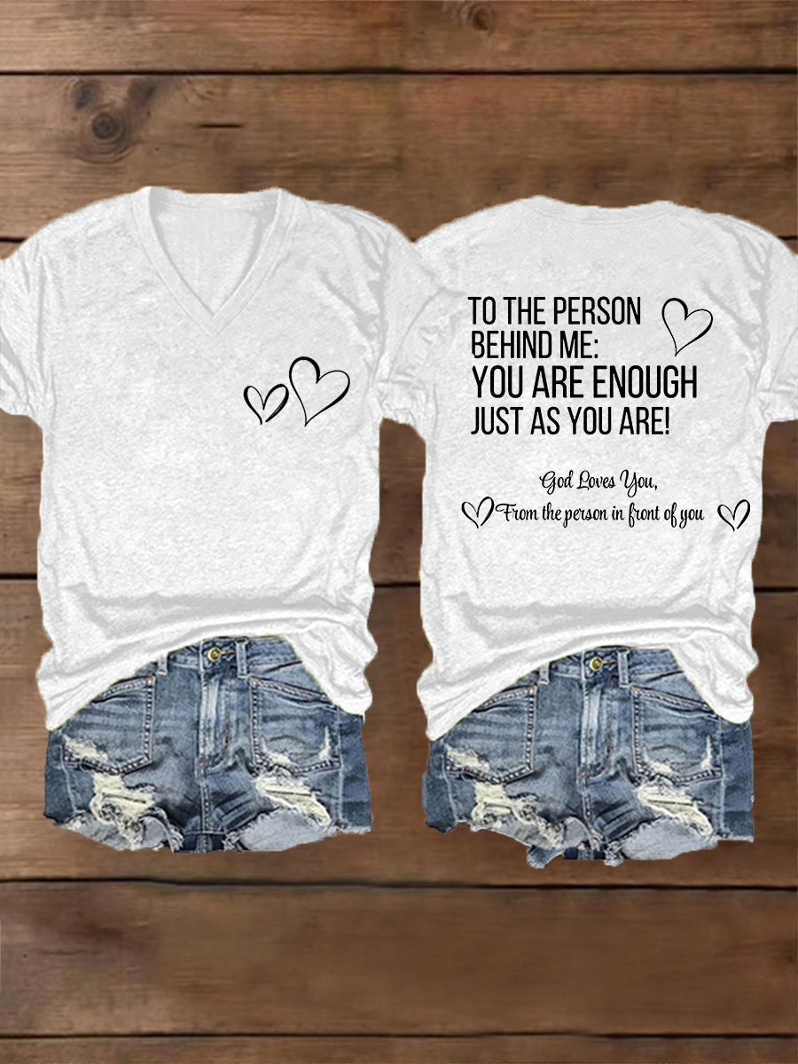 Women's Dear Person Behind Me You Are Enough Just As You Are! Mental Health Matters V-Neck Tee