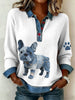 Women's Denim Patchwork Art French Bulldog Pattern Waffle Top