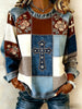 Women's Faith Cross Floral Patchwork Printed Denim Patchwork Top