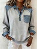 Women's Fashion Patchwork Design Lapel Sweatshirt