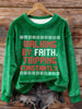 Women's Funny Christmas Walking By Faith Tripping Constantly Print Casual Flannel Sweatshirt