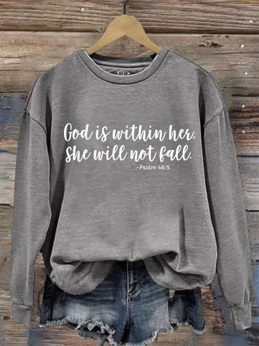 Women's God Is Within Her She Will Not Fall Printed Casual Sweatshirt