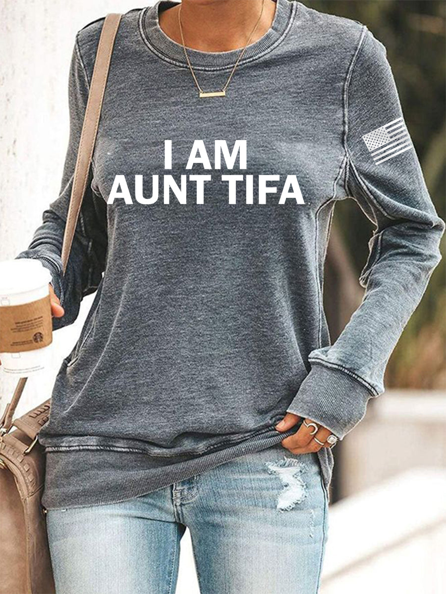 Women's I Am Aunt Tifa Aunties Against Fascists Sweatshirt