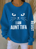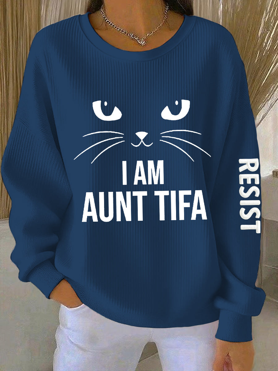 Women's I Am Aunt Tifa Aunties Resist Fascists Ribbed Round-Neck Sweatshirt