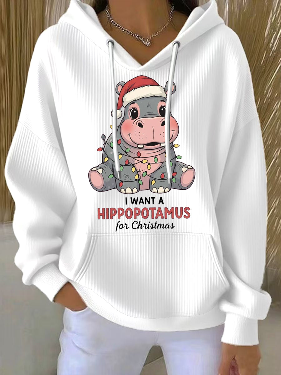 Women's I Want A Hippopotamus For Christmas Casual Hoodie